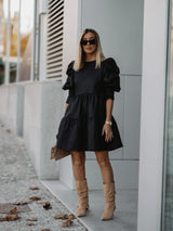 Vestido comprido com decote redondo e manga comprida abalonada no ombro. Detalhe de drapeado à frente. Pormenor de tecido animal print inspirado em leopardo texturizado com relevo aveludado. Acabamento em folho alto. Forro interior.
